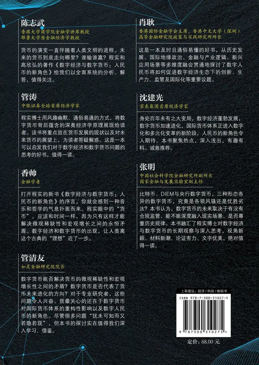 这些问题令人兴奋,又似乎艰涩难懂。工银国际首席经济学家程实博士的新著《数字经济与数字货币:人民币的新角色》将这些深奥的经济问题与正在我们身边发生的活生生的事实相结合,以大众皆可读懂的方式讲清楚了数字货币是如何改变经济运行的内在机理、重构全球货币体系和大国格局的。