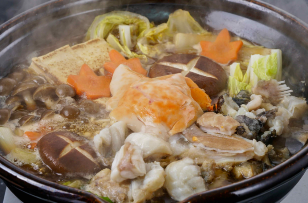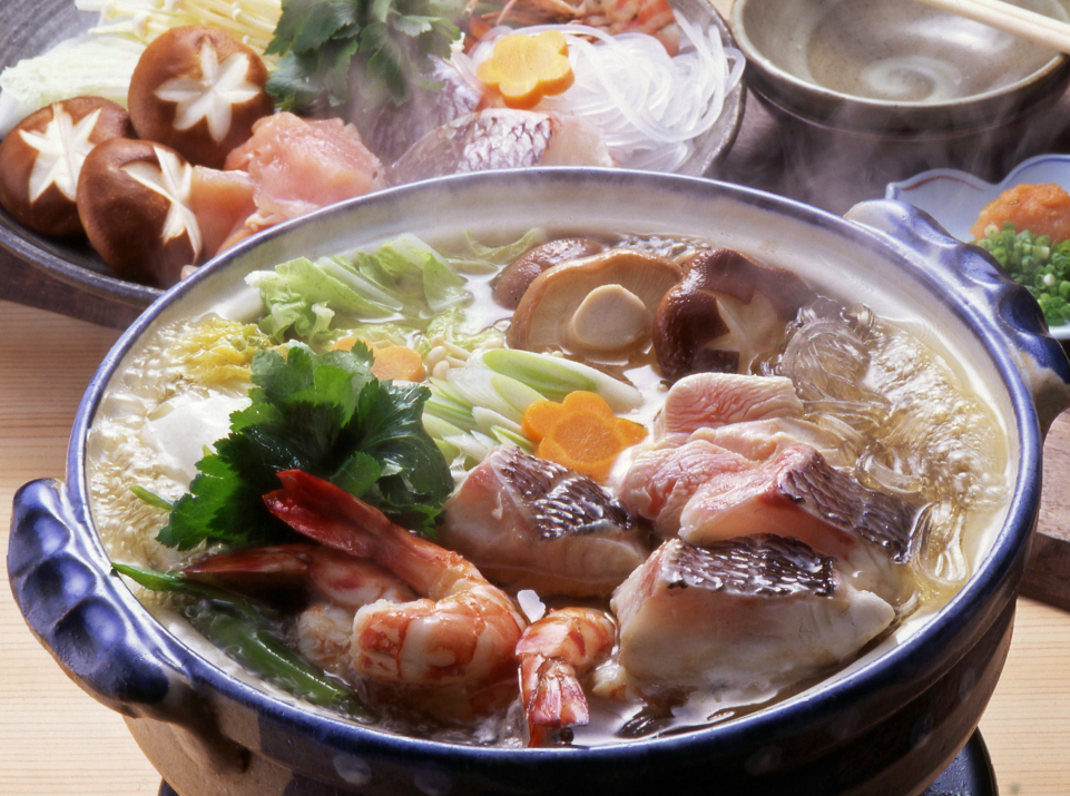 寄せ鍋是日本人常吃的一种火锅,一般加入各种海鲜和蔬菜。用鲣鱼、海带等炖出汤汁,用酱油、盐、料酒等调味。食材有鳕鱼、虾、扇贝、文蛤等鱼贝类;白菜、葱、茼蒿等蔬菜类;香菇、金针菇等蘑菇类和豆腐等,也可放肉类。最后放入面条或米饭作为结束也好吃。