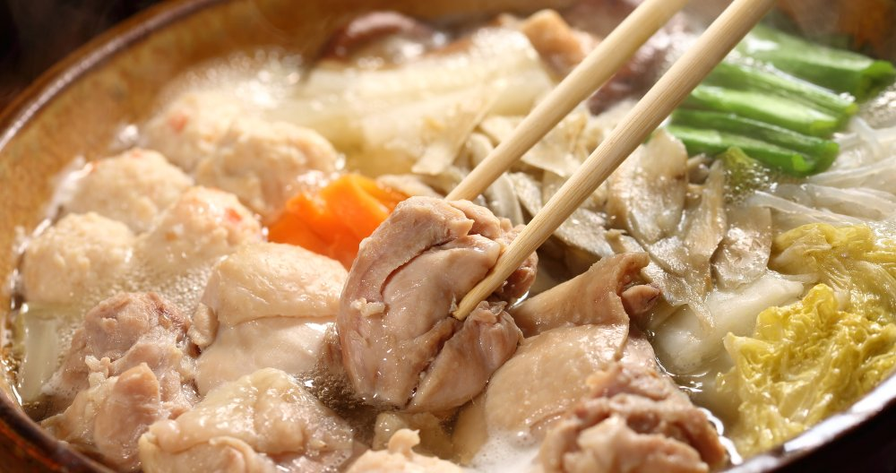 水炊き一种鸡肉火锅,把鸡肉炖好之后再放入蔬菜和其他食材炖煮。精心熬制的胶原蛋白浓厚的鸡汤,大量的蔬菜和豆腐类食材非常营养健康。