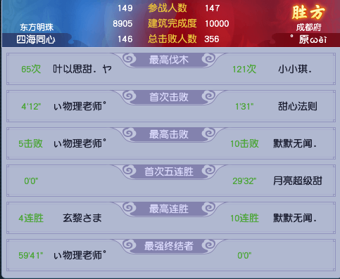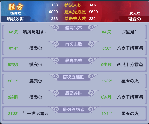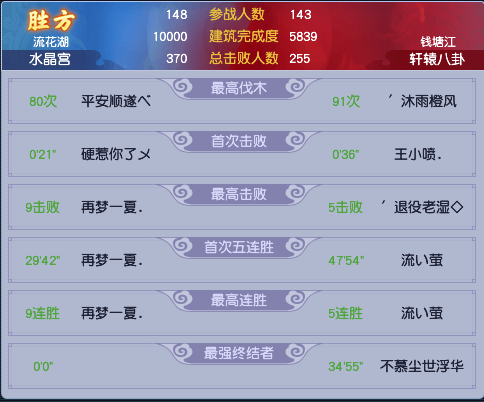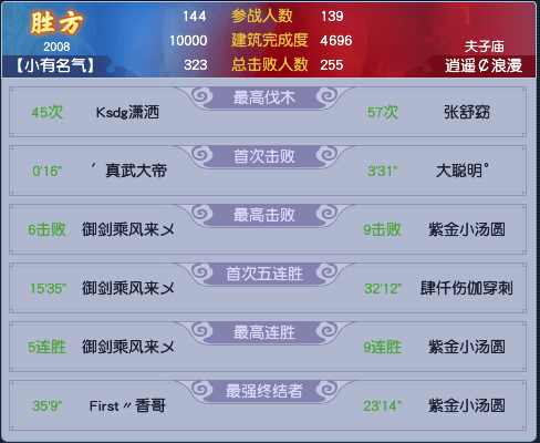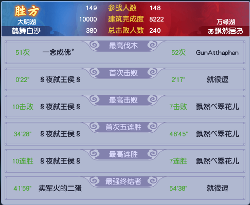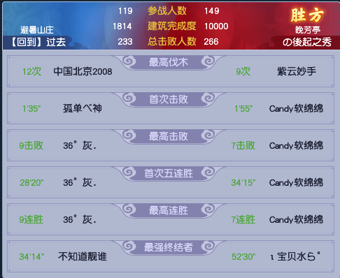 从参赛人数可以看出,【回到】过去存在着赛前动员不充分的问题。这导致【回到】过去在这场比赛中直接比の後起之秀少了6个队伍,在加上两个帮派的队伍实力本身的差距,の後起之秀毫无悬念的拿下了比赛。