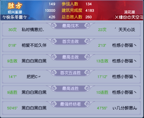 这两个帮派的实力很接近,决定本场比赛胜负的关键因素是鹤舞白沙小队质量要高于ぁ飘然居お,这使得ぁ飘然居お在比赛中后期因为小队的过分流失,失去了追赶伐木进度的能力。
