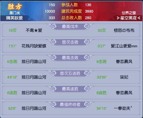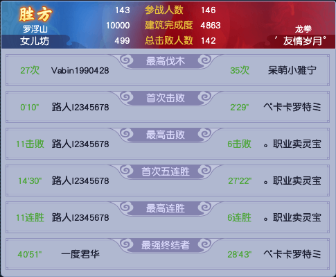 从今天的实战情况来看,女儿坊的竞技状态相比之前有所提升,但从参赛人数来看似乎这还不是女儿坊的最高水平。在比赛前期。′友情岁月°利用战术和女儿坊进行了一番精彩的拉扯,可惜,′友情岁月°的中等队伍较女儿坊有一定差距,导致′友情岁月°高开低走,输掉了比赛。