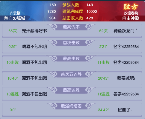 一个是第二联的亚军,一个是第六联的四强。两个帮派的综合实力在伯仲之间,但是,°原ωèì的顶级三攻队伍要更多一些,这决定了°原ωèì拥有更强的清人能力。在这场比赛中,两个帮派都没有布置特别的战术,因此,在清人上有着优势的°原ωèì赢下了比赛。
