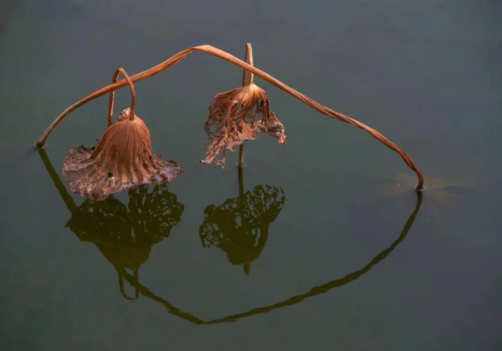秋风萧瑟,残红飘落,藕肥子满残荷破。日如梭,月如梭,眼睁眼闭浮云过。料是来年花更多,红,还似火;人,不是我。