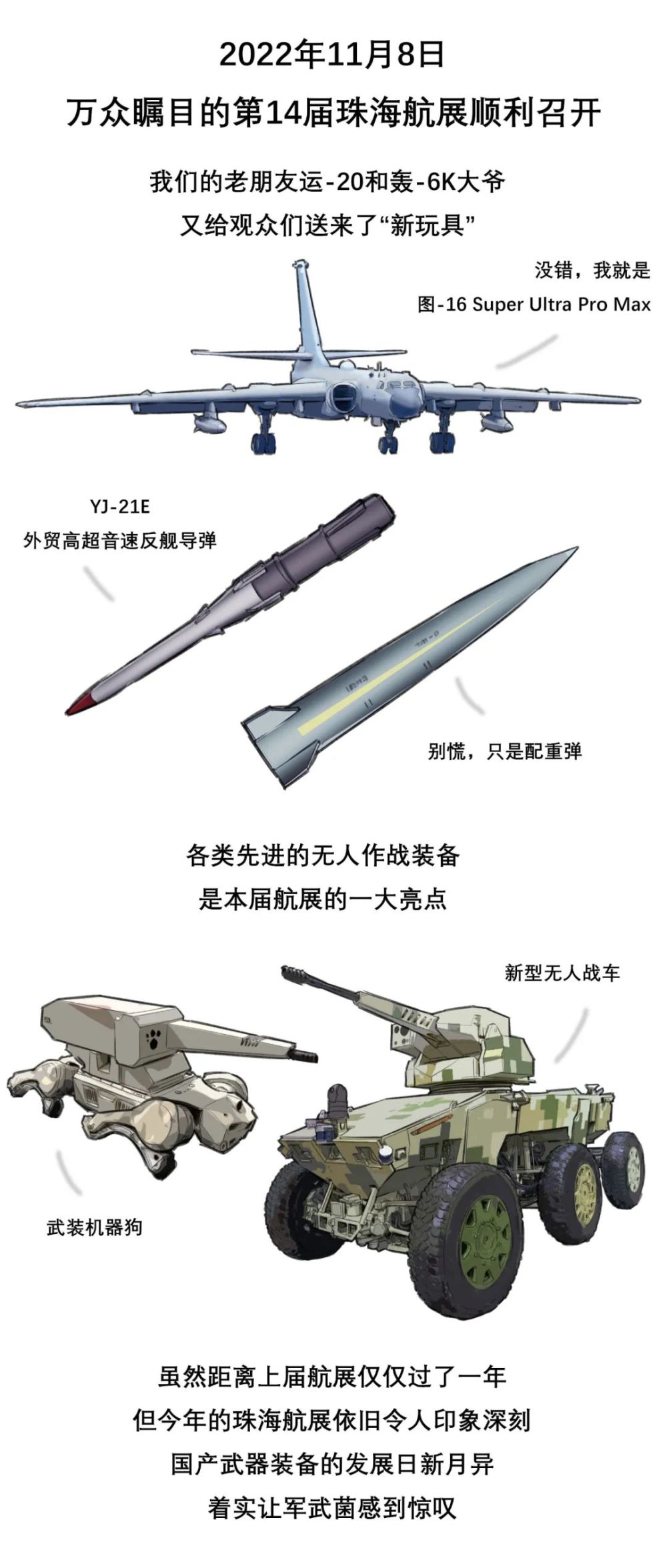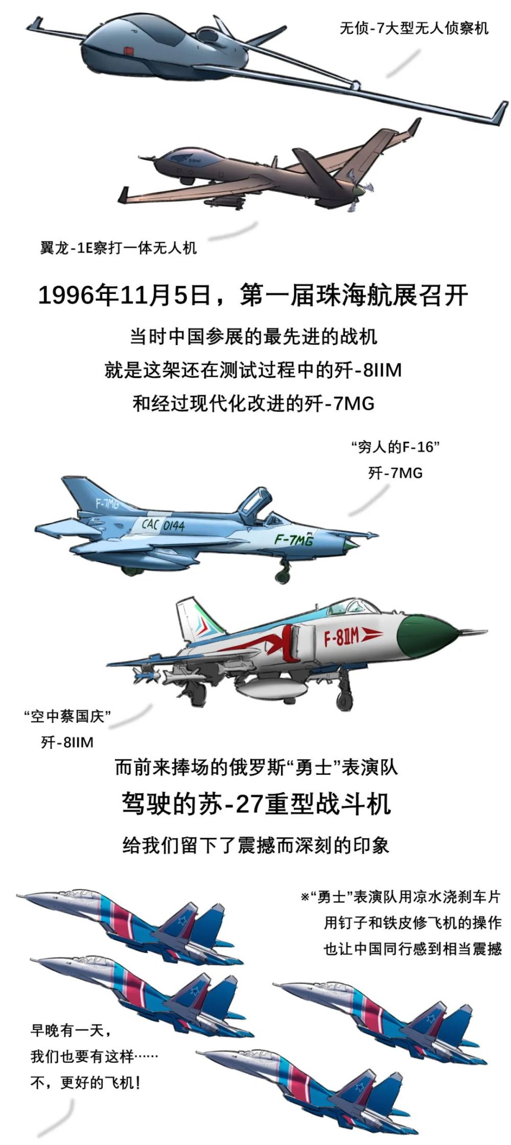 “骏马自知前程远,不待扬鞭自奋蹄。”这是参加珠海航展后我最大的感受。大到一架架飞机,小到一件件零件,无一不记录着中国航空航天事业的发展壮大,它们见证了我国不断缩小与发达国家在航空航天领域的差距。从发力追赶到并驾齐驱、从跟踪发展到自主创新、从弯道超车到引领行业。大国重器,振翅高飞;航空报国,自豪有我;奋马扬鞭,逐梦蓝天!