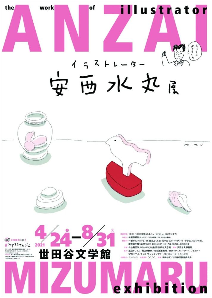 展览期间,安西水丸展览将在世田谷区的两个地点(世田谷文学馆和生活工房)举行。此外,还将在南青山的“スペースユイ”画廊和表参道的“ギャラリー山陽堂”举办展览。