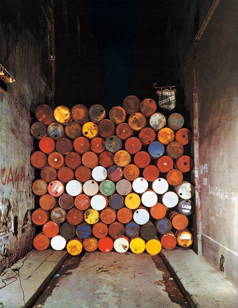 クリストとジャンヌ=クロード《鉄のカーテン―ドラム缶の壁(パリ、ヴィスコンティ通り、1961-62年)》1968年 69.7×54.5cm スクリーンプリント、紙