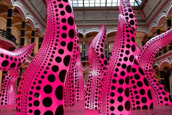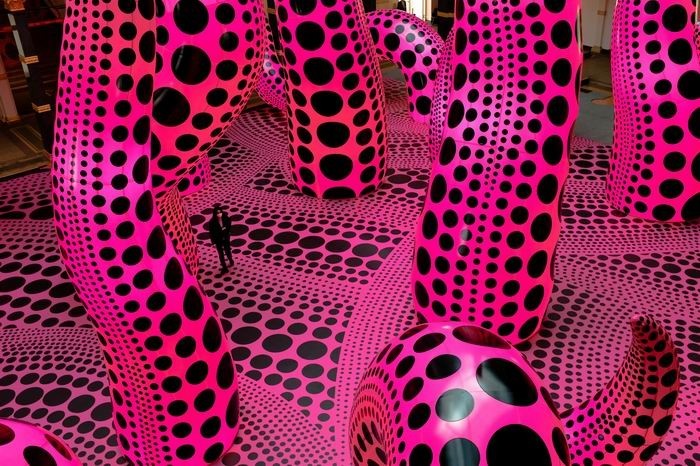 近日,在德国柏林的马丁-格罗皮乌斯博物馆举办了日本著名艺术家草间弥生的“A Retrospective”艺术展。展览按照时间顺序展出了草间弥生50年代至今的部分作品,涵盖了博物馆两层的十四个展厅。作品小至日常用的杯子,大到几十米高的装置,每件作品都透露着草间弥生对于宇宙、虚无、无限和生命的思考。