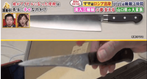 在妈妈Yana做晚饭时,节目组注意到,她用着的一把菜刀已经被磨得“面目全非”了。