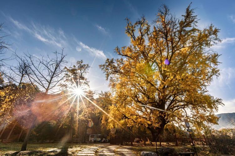 相较于诸多城市密密麻麻、成行成列的银杏观赏区,这些千年的大银杏树也少了几分匠气,随性伫立、自然生长。