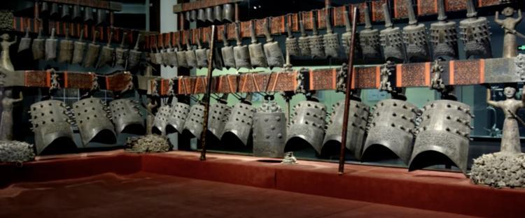 作为打击乐界的“大腕儿”,这套由65件青铜器组成的国之重器,只比钢琴少一个八度。/视频截图