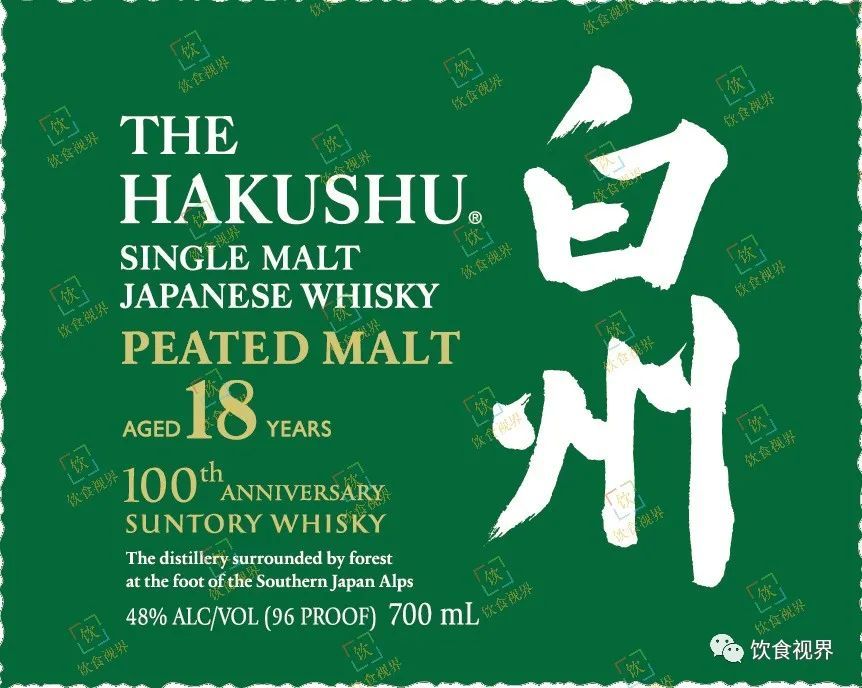 2022年11月09日,网上再次出现了四套三得利威士忌酒标,其中一套对应酒款名为——The Hakushu 18 Years Old Single Malt Japanese Whisky Peated Malt 100th Anniversary Edition。这是一款泥煤风味威士忌,酒龄为18年,酒精度数为48% ABV,容量为700ml。