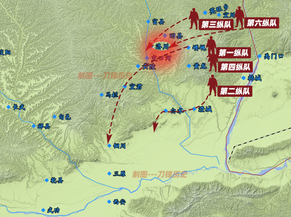 这一年的三月,西野各纵队以雷霆之势扫平了甘泉、富县、黄陵(即中部)、宜君、白水地区,为攻打洛川城扫平了外围障碍。