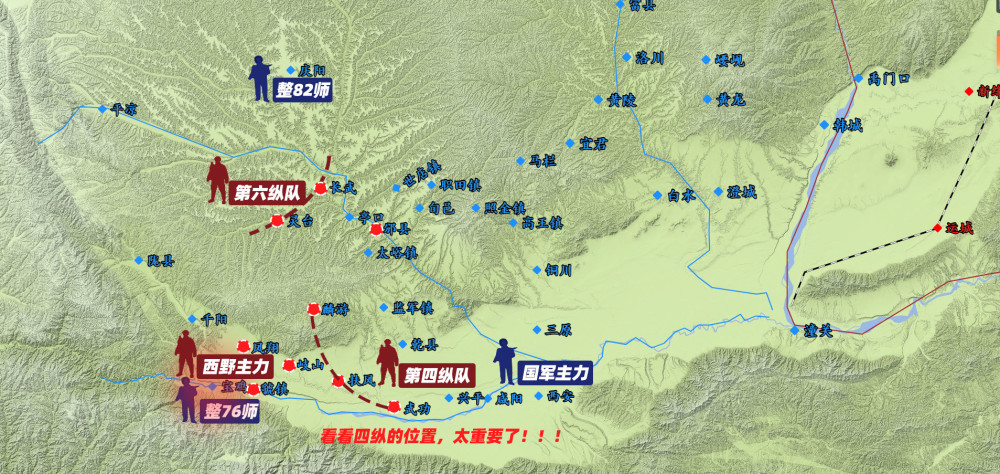 在北线,青马部队在马继援的带领下,打穿北部防线,进抵长武、亭口、永寿、旬邑地区,整个西野各个纵队瞬间处于敌人的全面包围中。