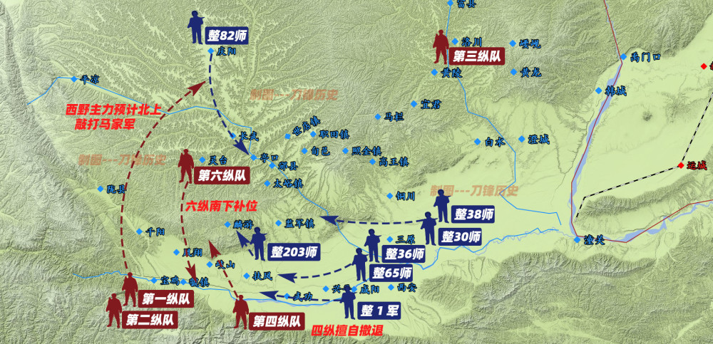 但是,除了进攻洛川城,西野其他纵队的活动方向却让胡宗南做出了一个可怕的猜想。