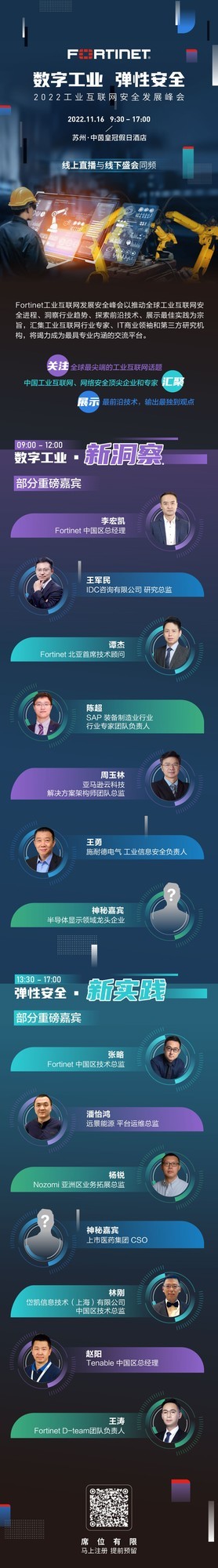 本次峰会,国际权威调研机构和Fortinet OT安全专家将为大家带来最新的OT网络安全发展趋势解读。同时,SAP、亚马逊云科技、施耐德电气、远景能源、Nozomi、岱凯信息(NTT)、Tenable等生态合作伙伴与客户也将通过方案解读、案例分享、生态协作等全方位、多角度地为大家展现一幅完整的OT网络安全新常态下弹性安全理念的具体落地方案。