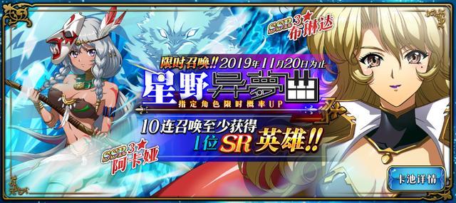 阿卡娅、布琳达这两位SSR英雄的评析,在传说君之前的文章中已经介绍过了。总的来说,阿卡娅在依托天赋【圣灵的守护】召唤的狼魂基础上,不论是用于辅助位置,还是以作为一个输出点,都能发挥出不错的作用。而御姐角色布琳达的登场,虽然天赋技能触发条件有点苛刻,但是在运用得当的情况下,也让流星阵容获得了对抗兰迪乌斯的手段。