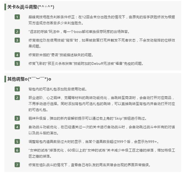 第三块是主要就是新增了艾拉斯卓和格尼尔的专属装备(头饰),作为英雄战力补充的措施,我们期待这两位英雄后续的发挥。第四块涉及的比较繁琐,因为是对游戏内容的优化。