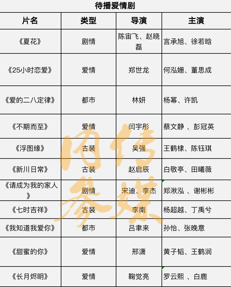 以下是CMNC—传媒大眼梳理汇总的一批待播爱情剧: