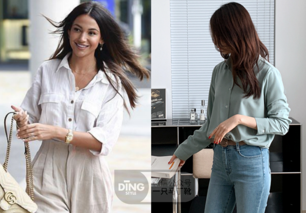 如果是气质柔和的暖风格姐妹,衬衫就挑材质柔软的棉质,或者有垂坠感的丝质,整体温柔又优雅。