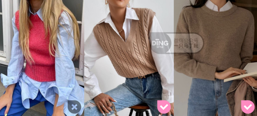 ▲?注意避开左边这种繁琐的设计款,不耐看也不好继续叠穿。