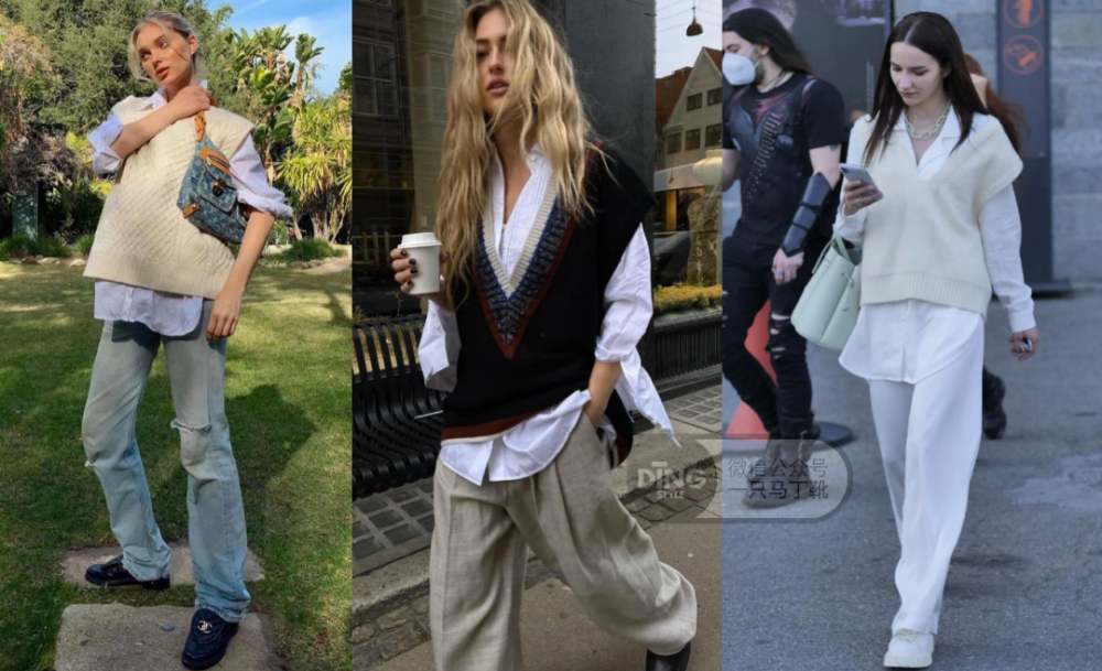 如果挑的衬衫和背心都是宽松款,就更成熟欧美了,衣袖宽阔利落,背心也是廓形的,有种大气的潇洒随性。