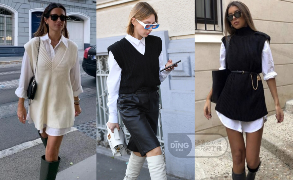 丁丁这里给会按照衬衫+背心、衬衫+打底、衬衫+毛衣,这三类具体展开,大家仔细看完一定获取不少新鲜叠穿灵感!