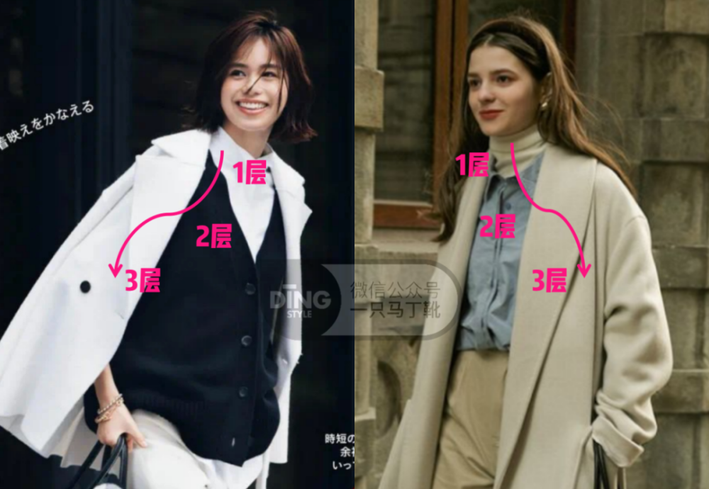 这里丁丁就从最直观的色彩入手,给大家总结了3类配色方案,直接照抄就能搞定叠穿了: