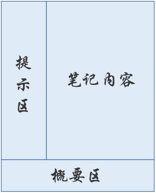 1)笔记区 (Note Taking Area):右上最大的空间是我们平时做笔记的地方,上课的知识点和例题都可以记在那里。
