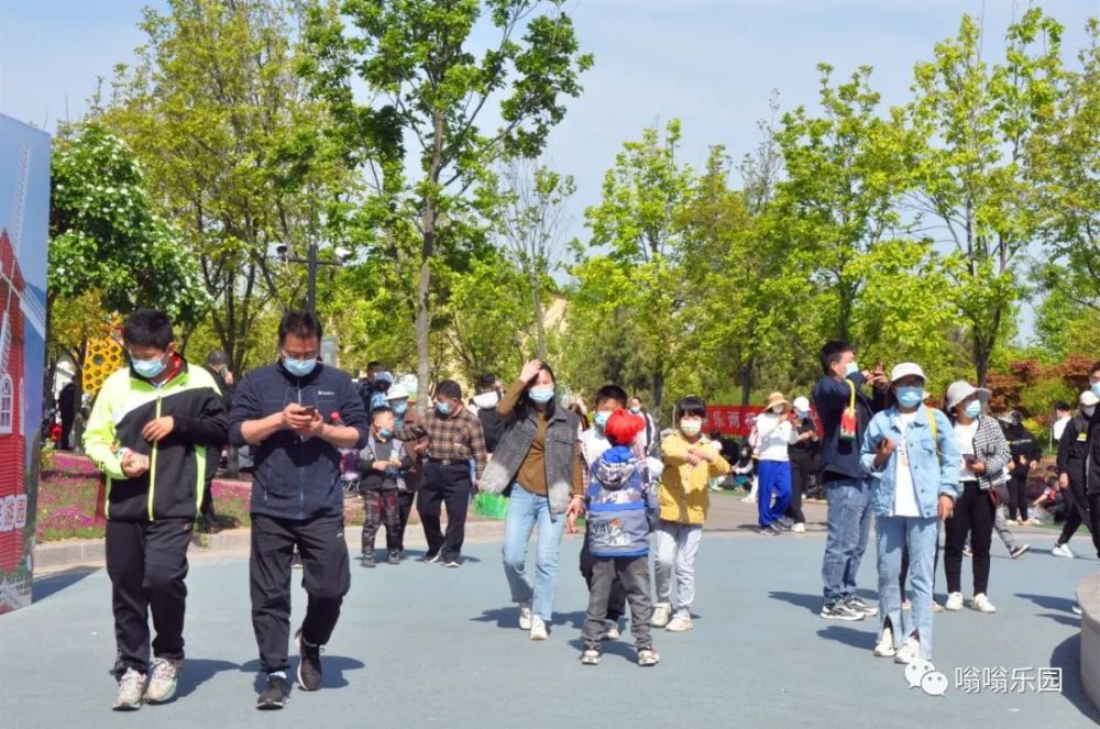 游客自觉遵守一米线,主动出示健康码,有序排队进入园区