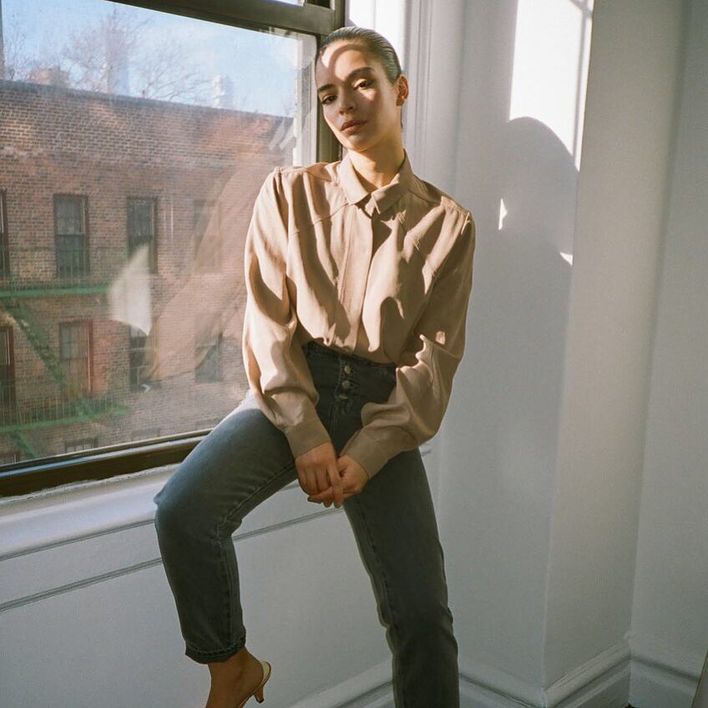 Lena Simonne 也喜欢用牛仔长裤作一些简单的配搭,配上不同风格的短款上衣,或者一件针织衬衫,简约又为风格增添变化。