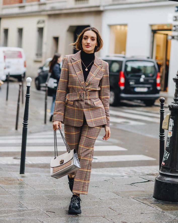 典雅的服装加上一对 dad sneakers,充分演绎传统优雅与现代活力融合的风格,都让人耳目一新,不会看厌。