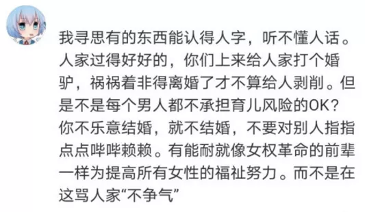 所以这个群体所希望的大概是所有女性不结婚不生子,要结婚生子就得把男人奴役起来,否则你就是失败的,你的婚姻就是“驴婚”。