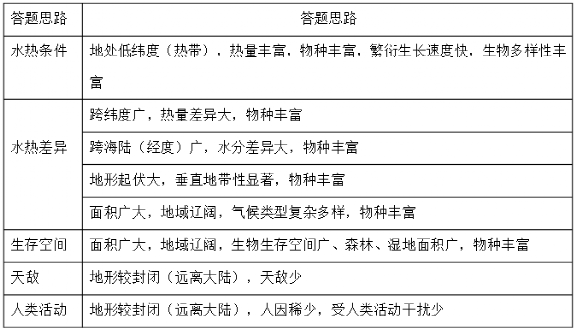 【生物多样性原因答题模板】
