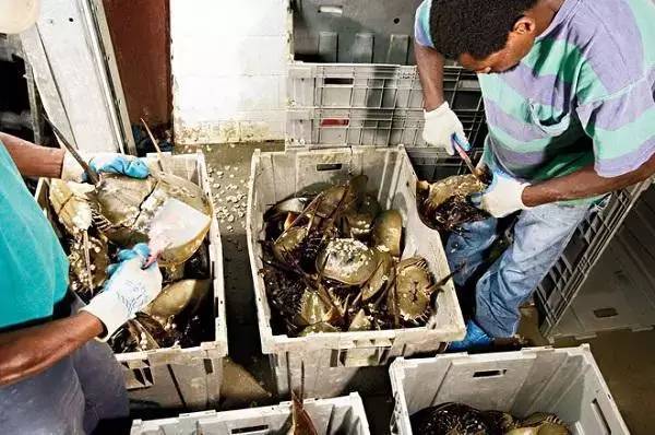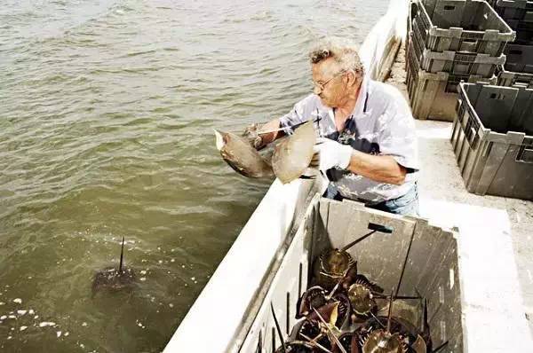 只有美国自然资源部授权的渔民才能抓捕鲎,它们通常在美国南卡罗来纳州的沙滩上产卵,渔民所要做的只是将它们从浅滩上拾起,再放入渔船之中。