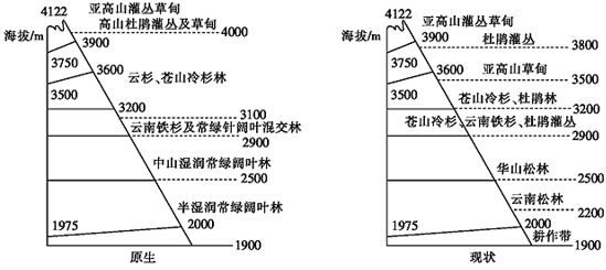 【答案】(1)地处低纬;热量条件好,降水充沛;(两点都要答全)垂直地带性显著。