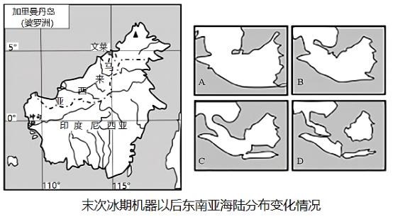 【分析】本题以加里曼丹岛为背景,考查影响动物进化的因素等高中地理主干知识,总体难度适中,重在考查学生的读图分析能力和知识迁移运用能力。