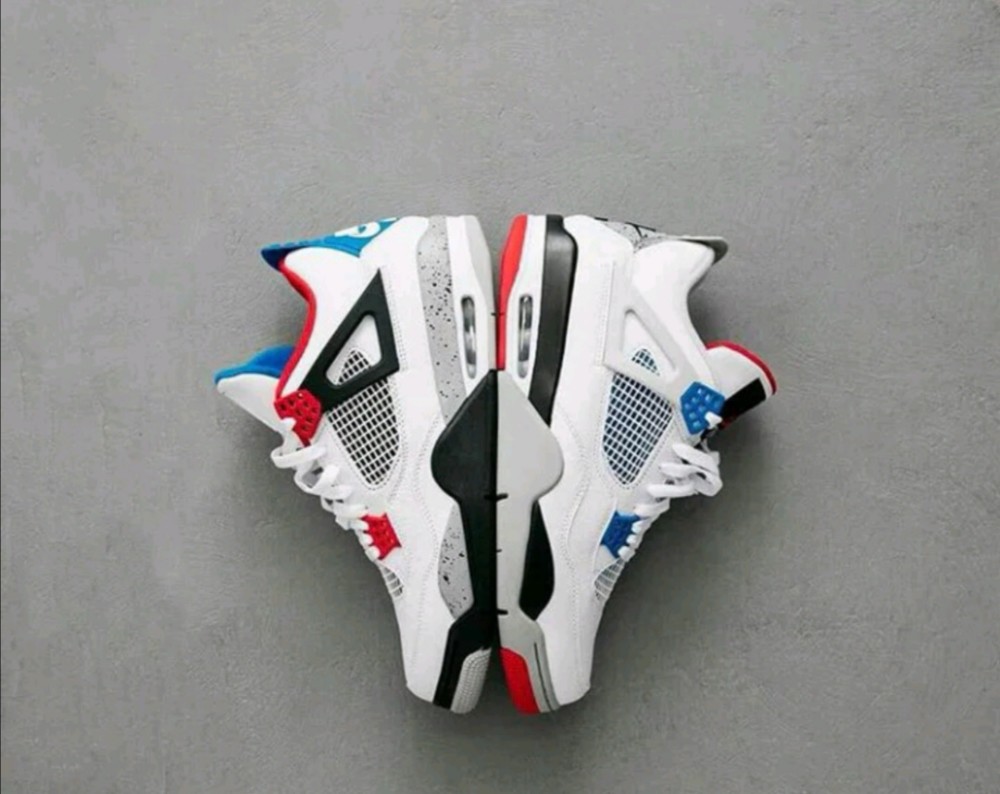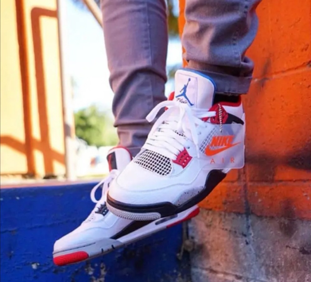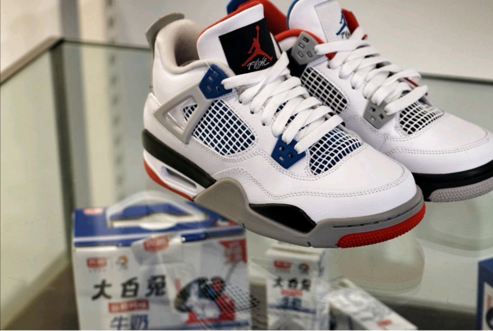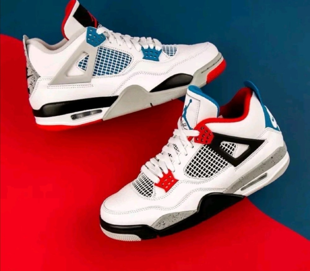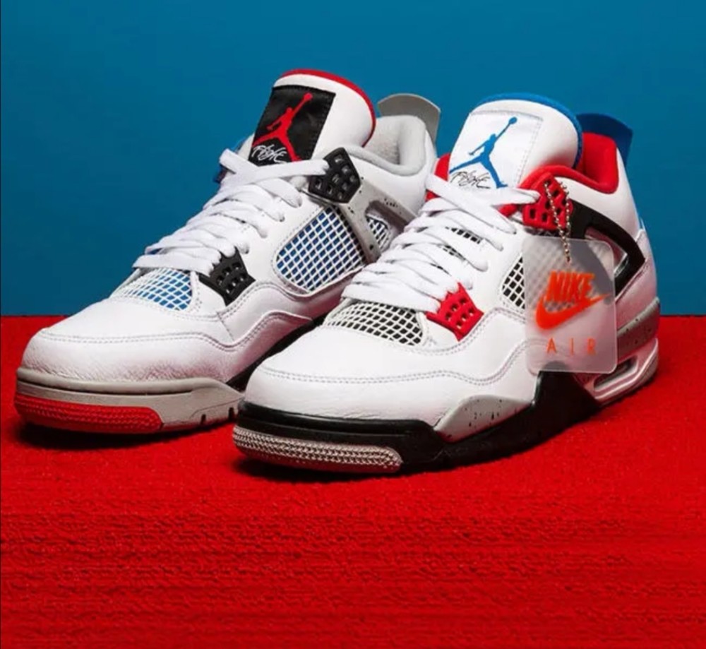 AJ4 What the版本是继AJ1top3配色后又一个混搭系列。以黑白原色为底,加上白水泥和白兰配色的元素。