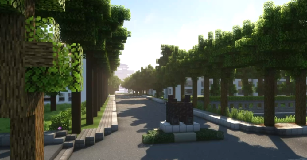 除了孤植树,团队在搭建大量的行道树时,也并没有简单地“复制粘贴”,而是纯手工搭建出不同的树冠形状,力图呈现每棵树本来的样子。看着一棵棵树木在虚拟世界中摇曳生姿,团队成员们更加确信,良好的成果一定离不开严谨细致的要求,而这在很大程度上要归功于“勤”的校训对他们潜移默化的影响。