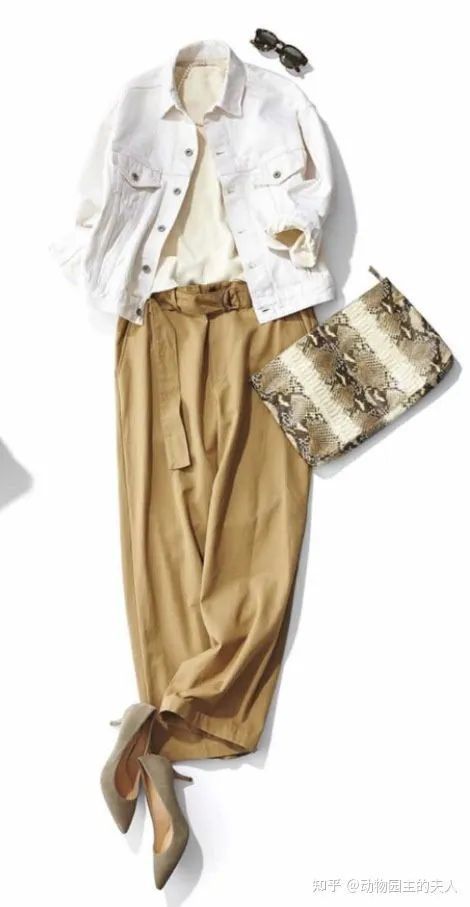 面这件白色的牛仔外套很吸引我,我都打算买一件了。首先白色风衣或者冲锋衣不好清洗,但是呢闭塞牛仔外套就比较容易清洗,而且不会担心洗坏之类的,而且白色很干净有亲和力,即便是初夏也可以穿,不会显得很热。像Emiri这样,下面搭配卡其色长裤就很好看,当然丹宁色的仔裤也可以。