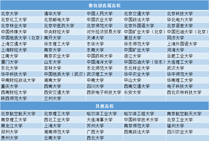 高校专项计划招生院校为教育部直属有关试点高校: