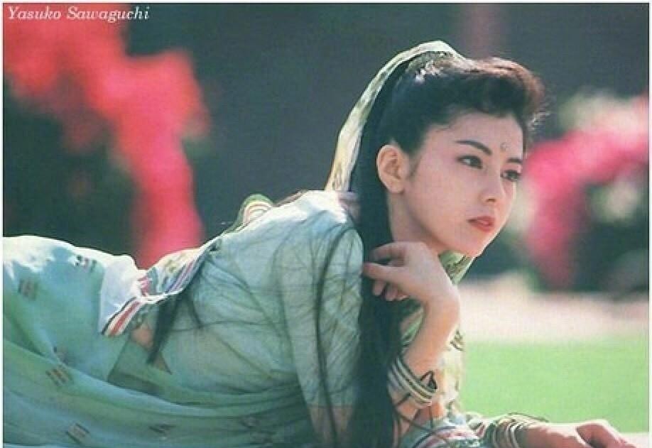 与其他日本明星不同的是,泽口靖子在五官上非常靠近国人,兼有东方美人的特点,尤其在眼睛方面,让她穿着古装更显得明艳动人