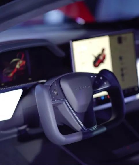 特斯拉从“第一性原理”出发,摒弃一切燃油车内饰既定的布局形式和繁杂设计,定义全新的汽车设计。特斯拉首席设计师Franz von Holzhausen表示:特斯拉产品的每个车身细节,都是与工程师一起构思出来的创意。这也体现出所有工业设计的真谛——设计为实用而服务,工业设计的主旨就是要满足实用性外还要兼顾美观。特斯拉Yoke方向盘设计前卫,如同宇宙飞船操纵挡杆般的造型,令人眼前一亮。高度集成化,化繁为简,配合自动辅助驾驶系统,带来全新驾驶体验。同时,Yoke方向盘需要驾驶员“三九点”握持,从驾驶习惯上提高驾驶的安全性。