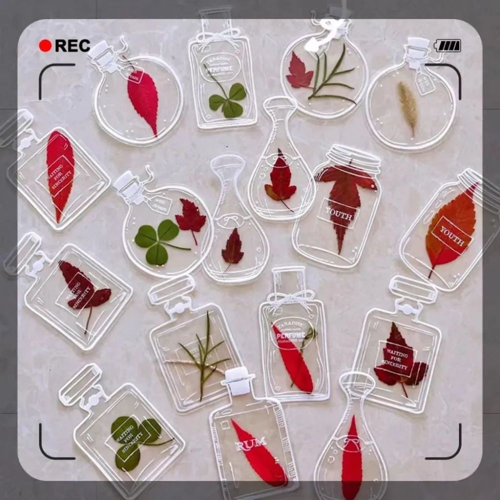 把捡拾来的树叶,放进书签薄膜中,既能方便观察,又能当做漂亮的小书签,把美丽的秋天留在小小的方寸之间。