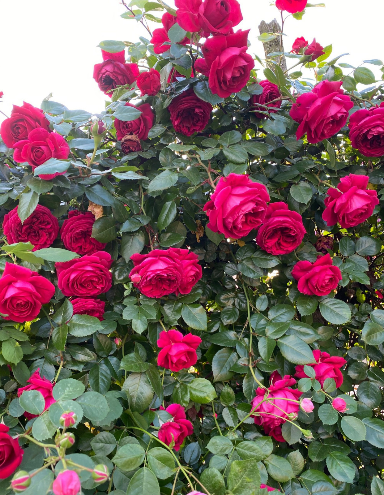 这种花名叫“玫瑰国度的天使”,简称“天使”,一看名字就知道不是“等闲之辈”,由知名玫瑰花育种公司Delbard培育,2012年正式推出市场,是一款经典的红色系灌木/藤本月季花,和红色龙沙宝石、佛罗伦蒂娜齐名,是世界上栽培最多的三种红色月季,拿过不少园艺奖项,也算是个名品,在花友圈子中口碑很好。