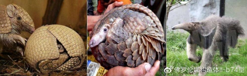 犰狳、穿山甲、食蚁兽,可以看到穿山甲的耳朵十分不明显。