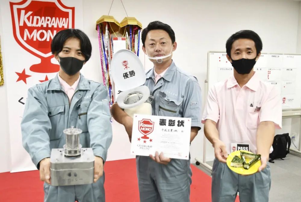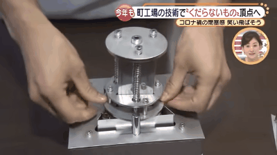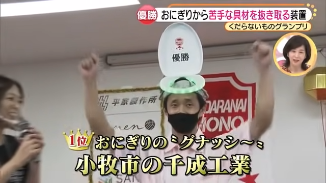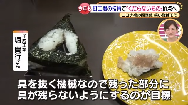 不过2021年这届无聊发明大赛的冠军是「可以拔掉饭团内馅」的机器,由一家传统板金公司制造「千成工业」制作!
