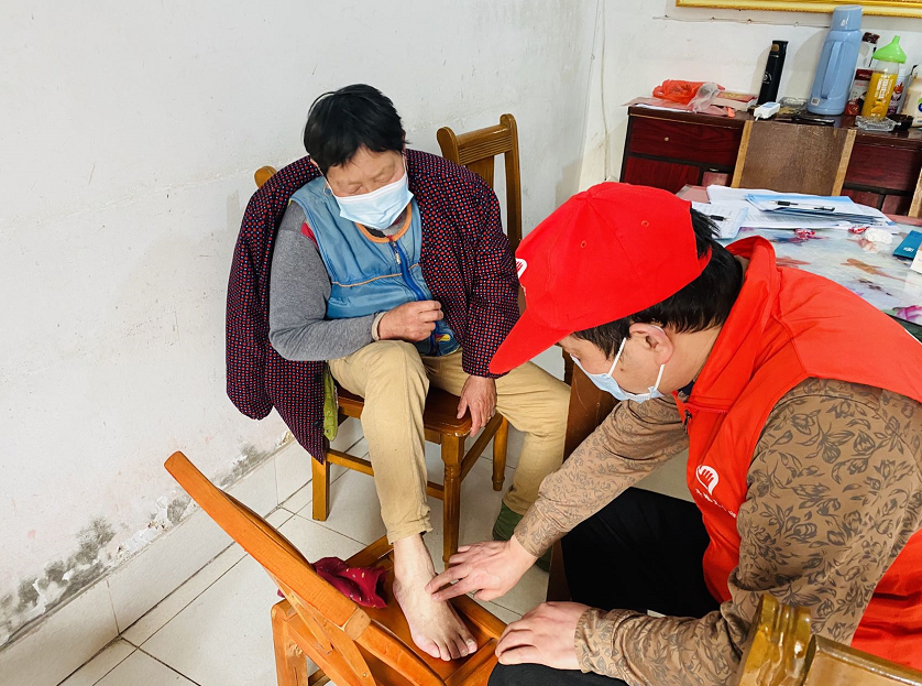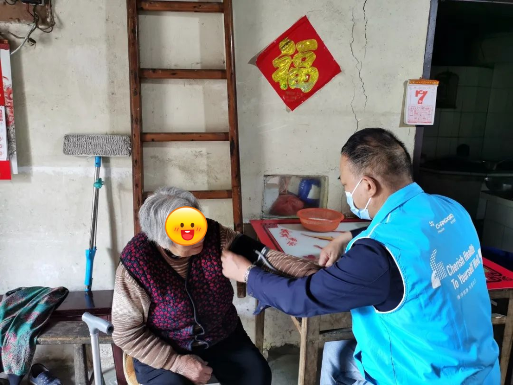 △金坛区尧塘谢桥村家庭医生祝志明上门为行动不便的老人服务