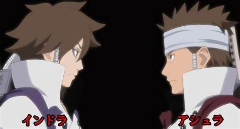 最后六道仙人认为阿修罗更适合做后继者,导致兄弟两人进行了一场声势浩大的决斗。最后两人决裂,因陀罗后代为宇智波一族,阿修罗后代为千手一族,奠定了宇智波和千手间的宿敌命运。此后兄弟俩的查克拉代代传承,斑和柱间、佐助和鸣人都是继承者。