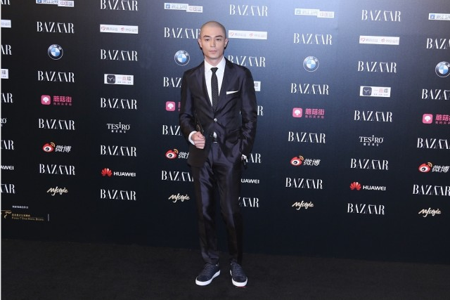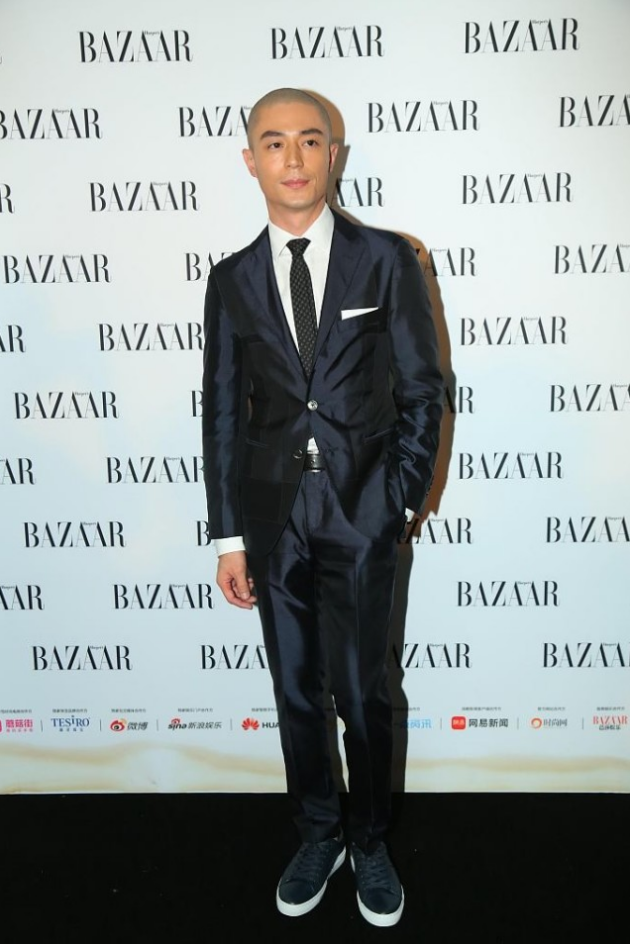 因此也不得不说,霍建华留光头颜值也在线,配黑色亮面西装雅痞十足,真有男人味。
